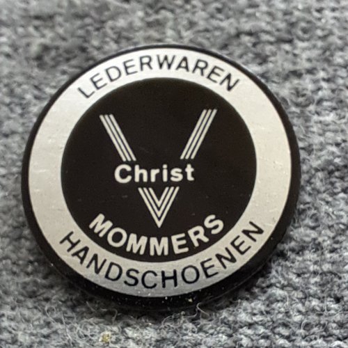 Christ Mommers handschoenen LeeuwardenAchtergrond: Zilver, Achtergrond: Zwart, Blik / Metaal, Fashion, Gebruikt, Nederland, Opdruk: Zilver, Opdruk: Zwart