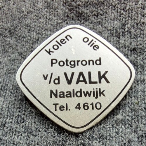v.d. Valk Naaldwijk / kolen olie potgrond / tel. 4610Achtergrond: Zilver, Blik / Metaal, Gebruikt, Nederland, Opdruk: Zwart
