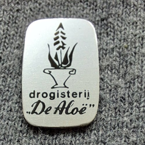 Drogisterij De AloëAchtergrond: Zilver, Blik / Metaal, Bloemen, Gebruikt, Nederland, Opdruk: ZwartAloë Vera / Den Haag