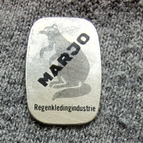 Marjo regenkledingindustrieAchtergrond: Zilver, Blik / Metaal, Dieren, Gebruikt, Nederland, Opdruk: ZwartRoosendaal
