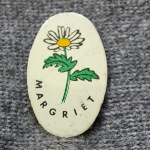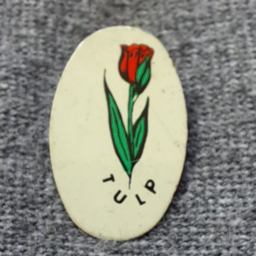 HollandAchtergrond: Wit, Blik / Metaal, Bloemen, Gebruikt, Nederland, Opdruk: Zwart, Vlaglentebloeiers vlag / krokus / tulp / narcis