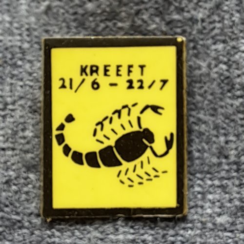 Kreeft 21/6-22/7 [geel]Achtergrond: Geel, Astrologie / Sterrenbeeld, Blik / Metaal, Gebruikt, Kreeft, Nederland, Opdruk: Zwart