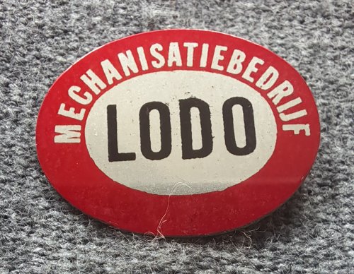 Mechanisatiebedrijf LodoAchtergrond: Rood, Achtergrond: Zilver, Blik / Metaal, Gebruikt, Nederland, Opdruk: Zilver, Opdruk: Zwart