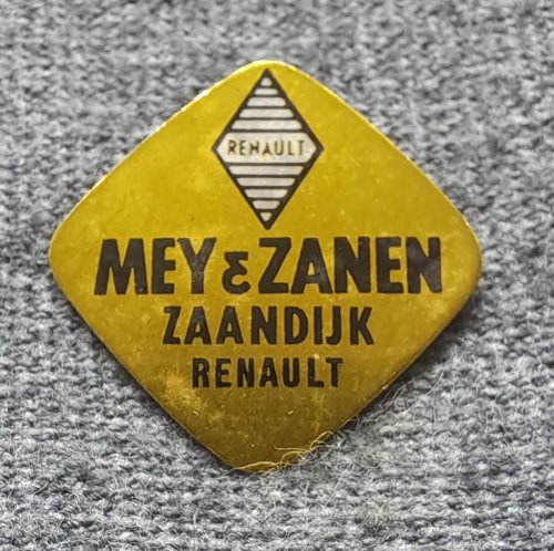 Mey & Zanen Zaandijk Renault(vracht-) Automerk (naam), Achtergrond: Goud, Blik / Metaal, Gebruikt, Nederland, Opdruk: Zwart
