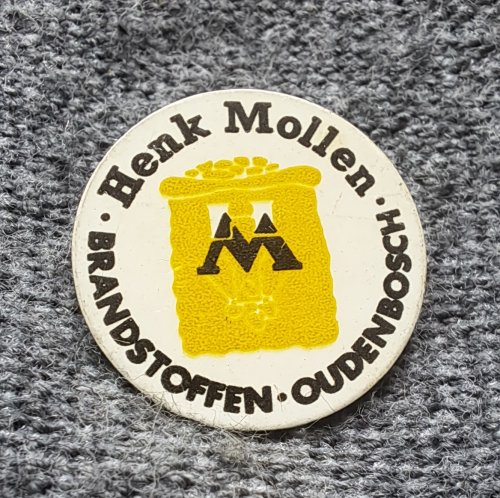 Henk Mollen brandstoffen OudenboschAchtergrond: Wit, Blik / Metaal, Brandstof / Energie, Gebruikt, Nederland, Opdruk: Zwart
