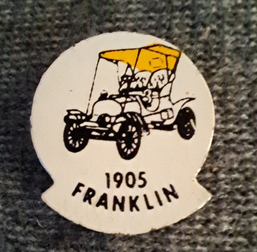 Franklin 1905 [geel]Achtergrond: Wit, Auto (afbeelding), Blik / Metaal, Diversen, Gebruikt, Nederland, Opdruk: Zwart