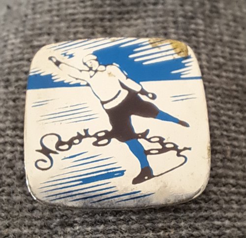 Nooitgedagt (gekleurd)Achtergrond: Zilver, Blik / Metaal, Gebruikt, Nederland, Opdruk: Zwart, Schaatsen, Sporter