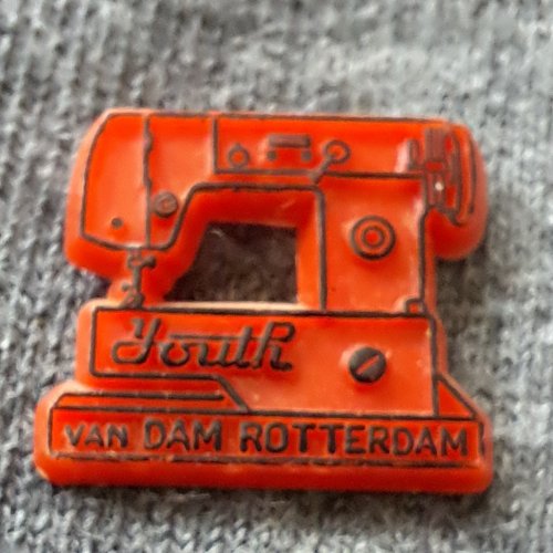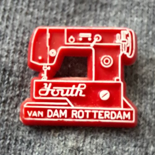 Youth van Dam Rotterdam [wit op rood]Achtergrond: Rood, Fashion, Gebruikt, Kunststof, Nederland, Opdruk: Witnaaimachines