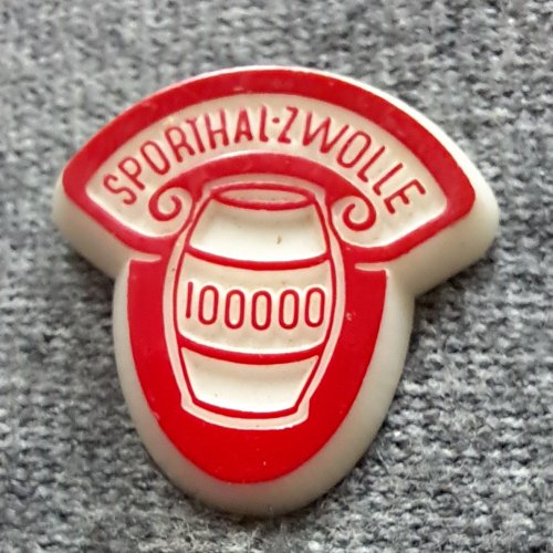Sporthal Zwolle 100000 [rood]Achtergrond: Wit, Gebruikt, Kunststof, Nederland, Opdruk: Rood, Sport en spel