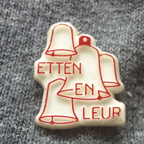 Etten en Leur [rood]Achtergrond: Wit, Gebruikt, Kunststof, Nederland, Opdruk: RoodKlokken / Gemeente / Etten-Leur