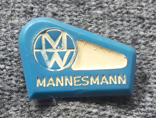 Mannesmann MWAchtergrond: Blauw, Duitsland, Gebruikt, Kunststof, Opdruk: WitLetters M.W. / Metaalfabriek / Staalfabriek / Düsseldorf