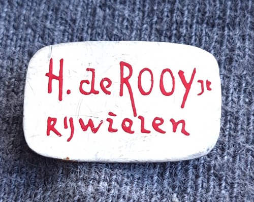 H. de Rooy jr. rijwielenAchtergrond: Wit, Blik / Metaal, Fiets / rijwiel, Gebruikt, Nederland, Opdruk: Rood