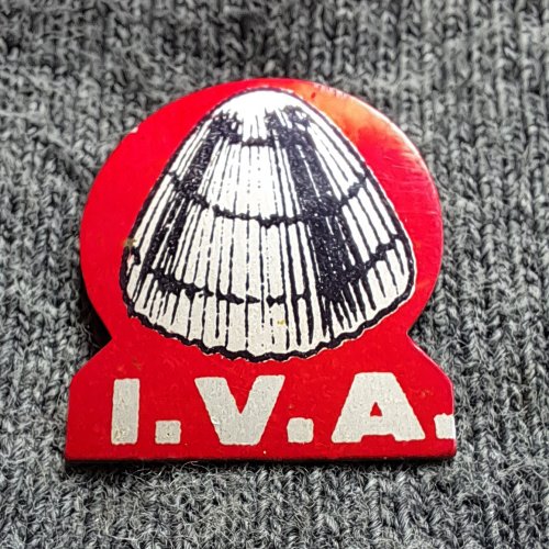 I.V.A.Achtergrond: Rood, Blik / Metaal, Gebruikt, Niet gecategoriseerd, Onbekend, Opdruk: ZilverLetters IVA