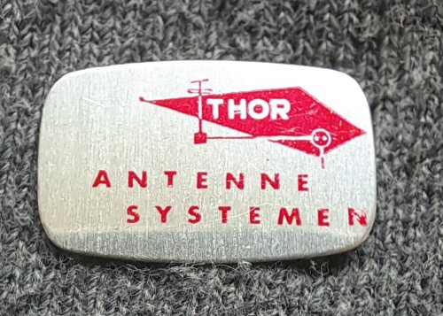 Thor antennesystemen [rood]Achtergrond: Zilver, Blik / Metaal, Gebruikt, Nederland, Opdruk: Rood, Radio en tv