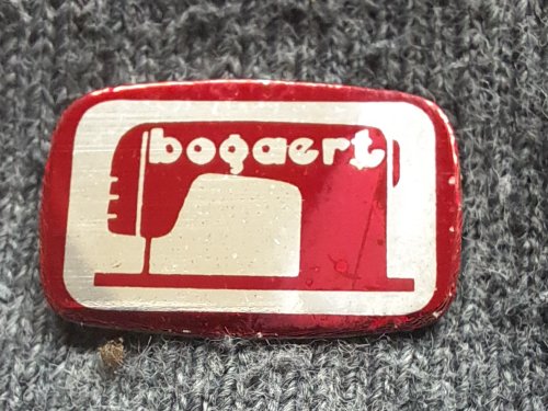 Bogaert (effen) [rood]Achtergrond: Rood, Blik / Metaal, Fashion, Gebruikt, Nederland, Opdruk: ZilverNaaimachines Hulst