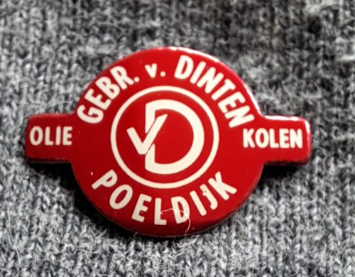 Gebr. v. Dinten Poeldijk olie kolenAchtergrond: Rood, Blik / Metaal, Brandstof / Energie, Gebruikt, Nederland, Opdruk: Zilver