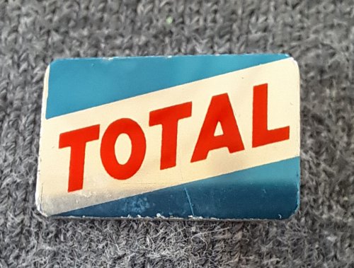Total (rechthoekig)Achtergrond: Zilver, Blik / Metaal, Brandstof / Energie, Gebruikt, Nederland, Opdruk: Rood