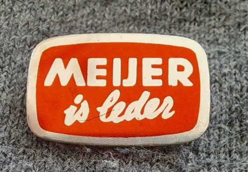 Meijer is leder [rood]Accessoires, Achtergrond: Rood, Blik / Metaal, Gebruikt, Nederland, Opdruk: ZilverHeereveen