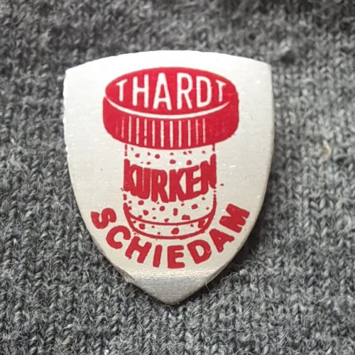 Spencer-Hey pullovers vestenAchtergrond: Zilver, Blik / Metaal, Figuur / persoon, Gebruikt, Geit / ram / bok, Nederland, Opdruk: Rood, Textiel / KledingSchilder / verf