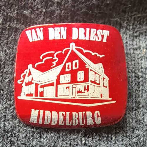van den Driest MiddelburgAchtergrond: Rood, Blik / Metaal, Fiets / rijwiel, Gebruikt, Nederland, Opdruk: ZilverRijwielhandel