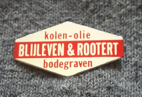 Blijleven & Rootert kolen – olie BodegravenAchtergrond: Rood, Achtergrond: Zilver, Blik / Metaal, Brandstof / Energie, Gebruikt, Nederland, Opdruk: Rood, Opdruk: Zilver