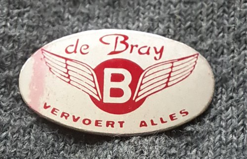 de Bray vervoert allesAchtergrond: Zilver, Blik / Metaal, Gebruikt, Nederland, Opdruk: Rood, Transporttransportbedrijf / vleugels