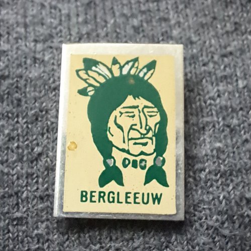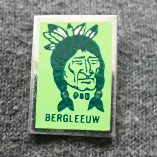 Bergleeuw [groen op groen]Achtergrond: Groen, Blik / Metaal, Gebruikt, Indiaan, Nederland, Opdruk: Groen