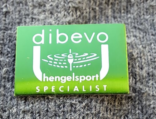 Dibevo hengelsport specialist (blanke dobber) [felgroen]Achtergrond: Groen, Blik / Metaal, Gebruikt, Nederland, Opdruk: Zilvervissen hobby