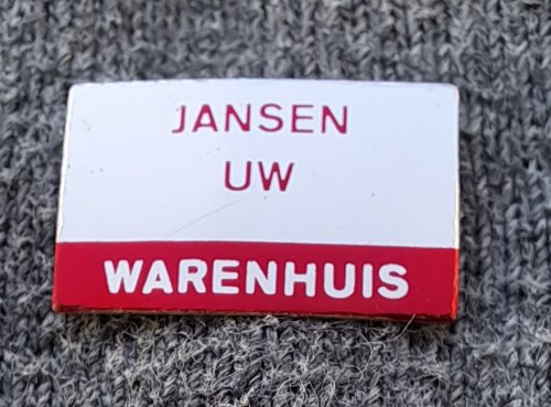 Warenhuis: Jansen uwAchtergrond: Rood, Achtergrond: Zilver, Blik / Metaal, Gebruikt, Nederland, Opdruk: Rood, Opdruk: Zilver