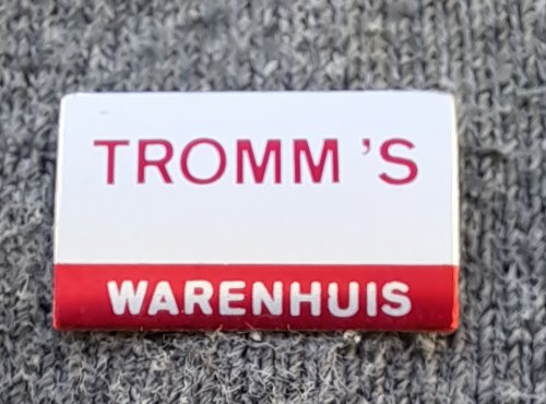 Warenhuis: Tromm’sAchtergrond: Rood, Achtergrond: Zilver, Blik / Metaal, Gebruikt, Nederland, Opdruk: Rood, Opdruk: Zilver