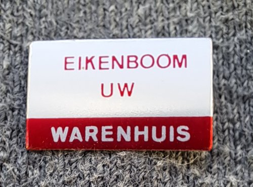 Warenhuis Eikenboom uwAchtergrond: Rood, Achtergrond: Zilver, Blik / Metaal, Gebruikt, Nederland, Opdruk: Rood, Opdruk: Zilver