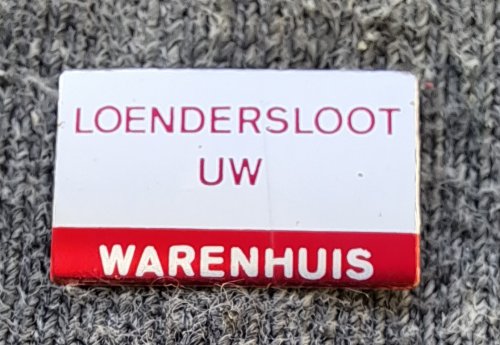 Warenhuis: Loendersloot uwAchtergrond: Rood, Achtergrond: Zilver, Blik / Metaal, Gebruikt, Nederland, Opdruk: Rood, Opdruk: Zilver