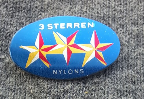 3 sterren nylons [blauw]Achtergrond: Blauw, Blik / Metaal, Fashion, Gebruikt, Nederland, Opdruk: Zilver, Ster