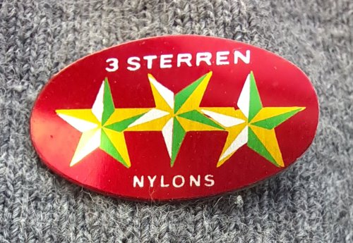 3 sterren nylons [rood]Achtergrond: Rood, Blik / Metaal, Fashion, Gebruikt, Nederland, Opdruk: Zilver, Ster