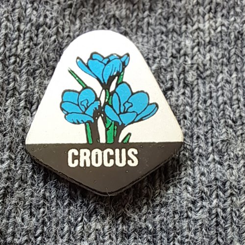 Crocus (krokus) [blauw]Achtergrond: Zwart, Blik / Metaal, Bloemen, Gebruikt, Nederland, Opdruk: Zilver