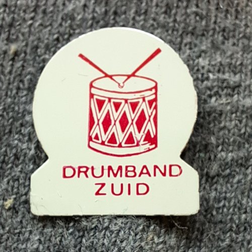 Drumband Zuid [rood]Achtergrond: Wit, Blik / Metaal, Gebruikt, Muziek, Nederland, Opdruk: Roodtrommels