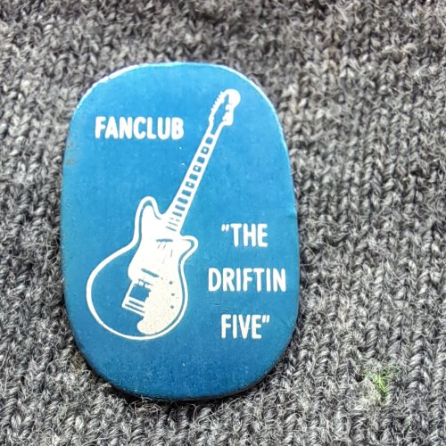 Fanclub “The driftin five”Achtergrond: Blauw, Blik / Metaal, Gebruikt, Muziek, Nederland, Opdruk: Zilvergitaar
