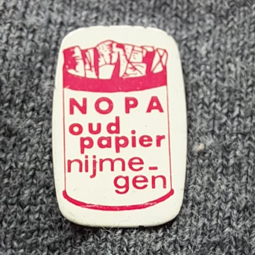 Chemisch reinigen Piet HeinAchtergrond: Rood, Bekend persoon, Blik / Metaal, Gebruikt, Nederland, Opdruk: Zilver, Wasserij / stomerij