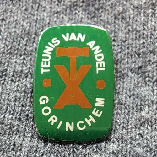 Teunis van Andel Gorinchem [lichtgroen]Achtergrond: Groen, Blik / Metaal, Gebruikt, Nederland, Opdruk: Witscheepsbouw / TvA