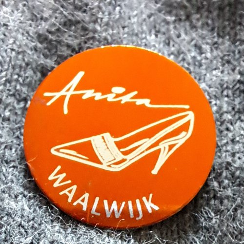 Anita Waalwijk [oranje]Achtergrond: Oranje, Blik / Metaal, Gebruikt, Nederland, Opdruk: Zilver, Schoenen