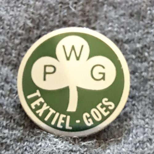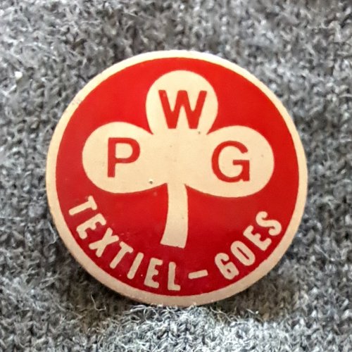 P.W.G. Piet Weststrate Azn. Groothandel GoesAchtergrond: Rood, Achtergrond: Zwart, Blik / Metaal, Bloemen, Gebruikt, Nederland, Opdruk: Zilver, Textiel / KledingPWG