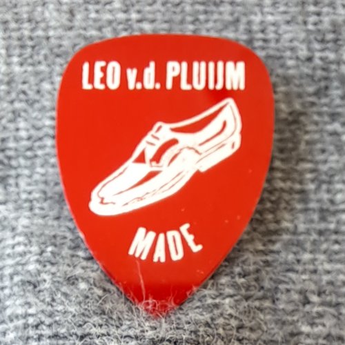 Leo v.d. Pluijm Made [rood]Achtergrond: Rood, Blik / Metaal, Gebruikt, Nederland, Opdruk: Zilver, Schoenen