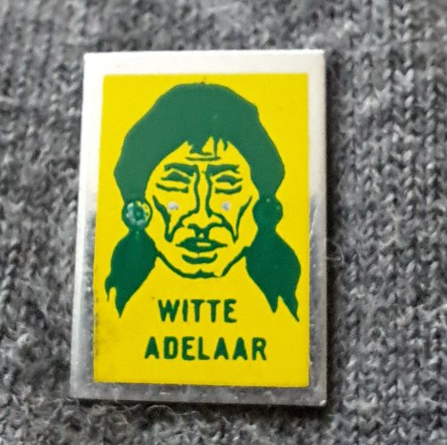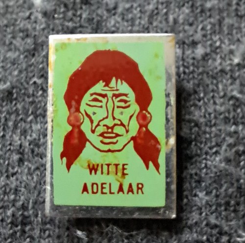 Witte Adelaar [wit met groen]Achtergrond: Wit, Blik / Metaal, Gebruikt, Indiaan, Nederland, Opdruk: Groen