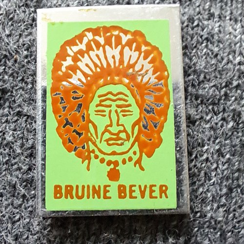Bruine Bever [groen met blauw]Achtergrond: Groen, Blik / Metaal, Gebruikt, Indiaan, Nederland, Opdruk: Blauw
