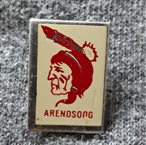 Arendsoog [groen met blauw]Achtergrond: Groen, Blik / Metaal, Gebruikt, Indiaan, Nederland, Opdruk: Blauw