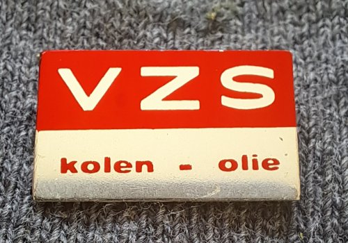 VZS kolen – olie [rood]Achtergrond: Rood, Achtergrond: Zilver, Blik / Metaal, Brandstof / Energie, Gebruikt, Nederland, Opdruk: Rood, Opdruk: Zilver