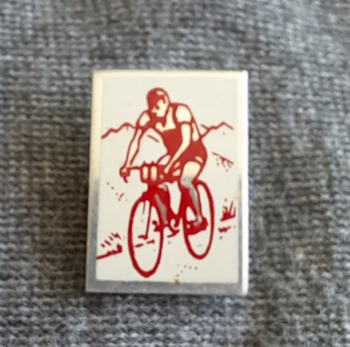 Wielrennen [rood op wit]Achtergrond: Wit, Blik / Metaal, Gebruikt, Nederland, Opdruk: Rood, Sporter, WielrennenWielersport