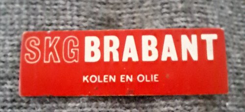 SKG Brabant – Kolen en olieAchtergrond: Rood, Achtergrond: Wit, Blik / Metaal, Brandstof / Energie, Gebruikt, Nederland, Opdruk: Rood, Opdruk: Wit