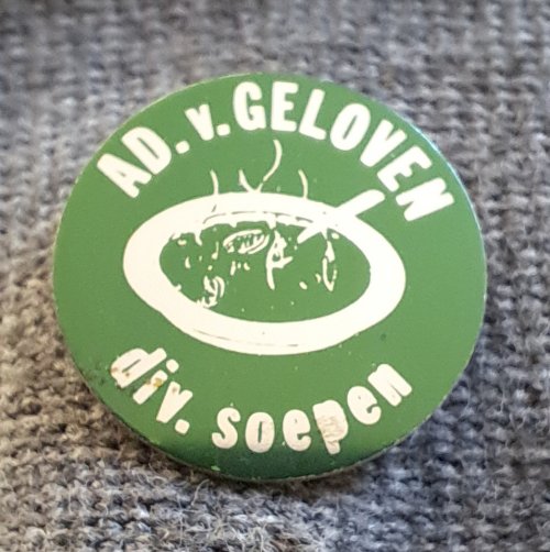 Ad. v. Geloven / div. soepen [groen]Achtergrond: Rood, Blik / Metaal, Gebruikt, Opdruk: Wit, Trefwoorden