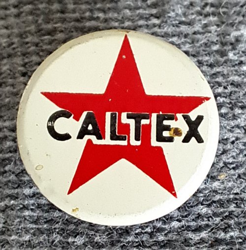 Caltex001-010 cent, 20230315, Achtergrond: Rood, Achtergrond: Wit, Blik / Metaal, Brandstof / Energie, Licht beschadigd, Marktplaats, Nederland, Opdruk: Zwart, SterWebsite LastDodo